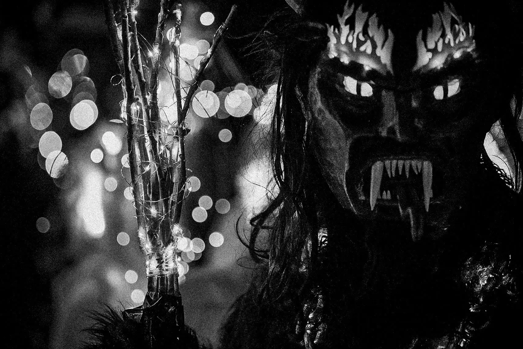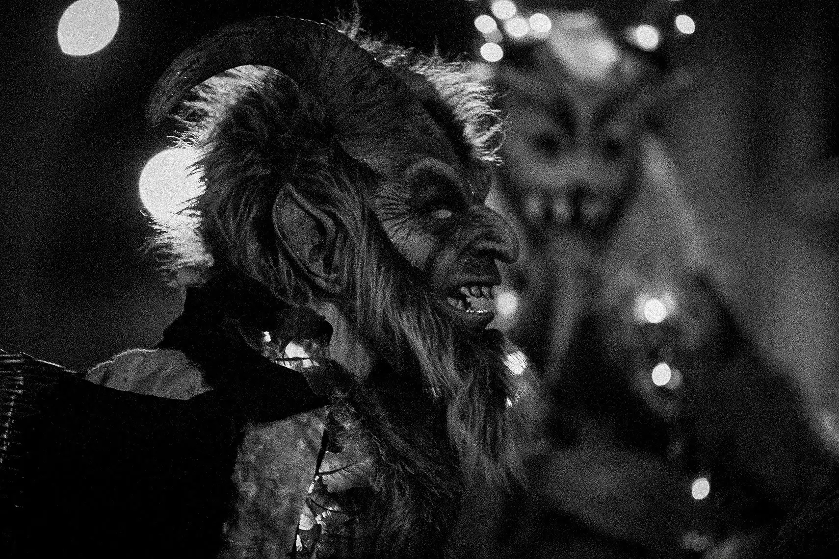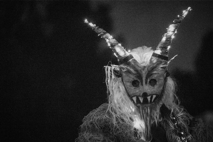 En el Krampuslauf, San Nicolás encabeza el recorrido como figura moral y guía. Pero Martin, siempre atento al subtexto, entiende que el verdadero protagonismo no está en la figura santa sino en las bestias que lo siguen. Allí es donde coloca su atención: en esos seres que representan la parte salvaje que el mundo moderno intenta domar.