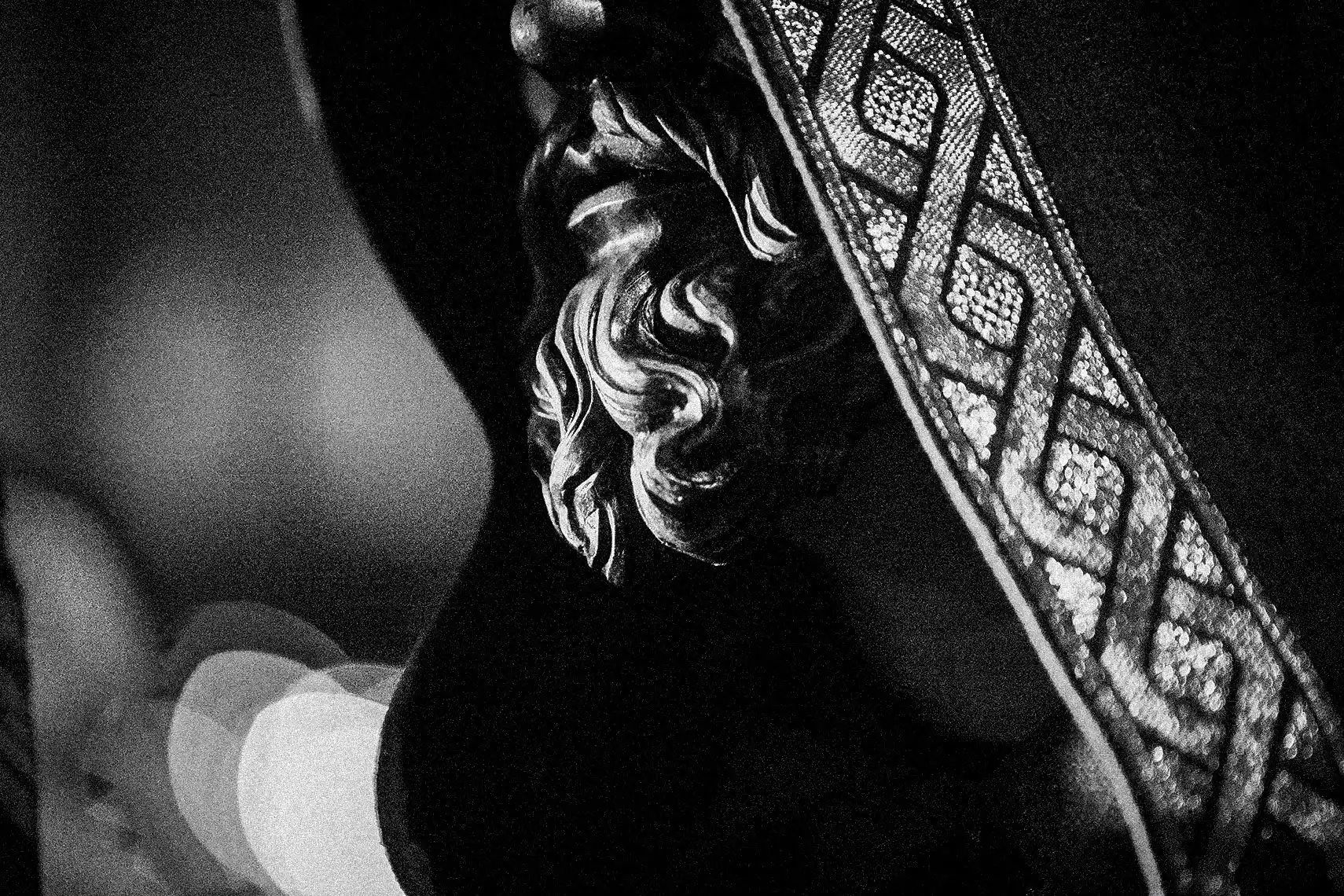 Mientras otros fotógrafos documentan el evento como un espectáculo turístico, Martin se acerca como si estuviera entrando a un sueño precristiano. Sus encuadres recogen el peso de los cuernos, el espesor de la piel, la aspereza de la madera tallada. Pero sobre todo, recogen lo que no se puede tocar: esa energía salvaje que convierte al participante en algo más antiguo que él mismo.