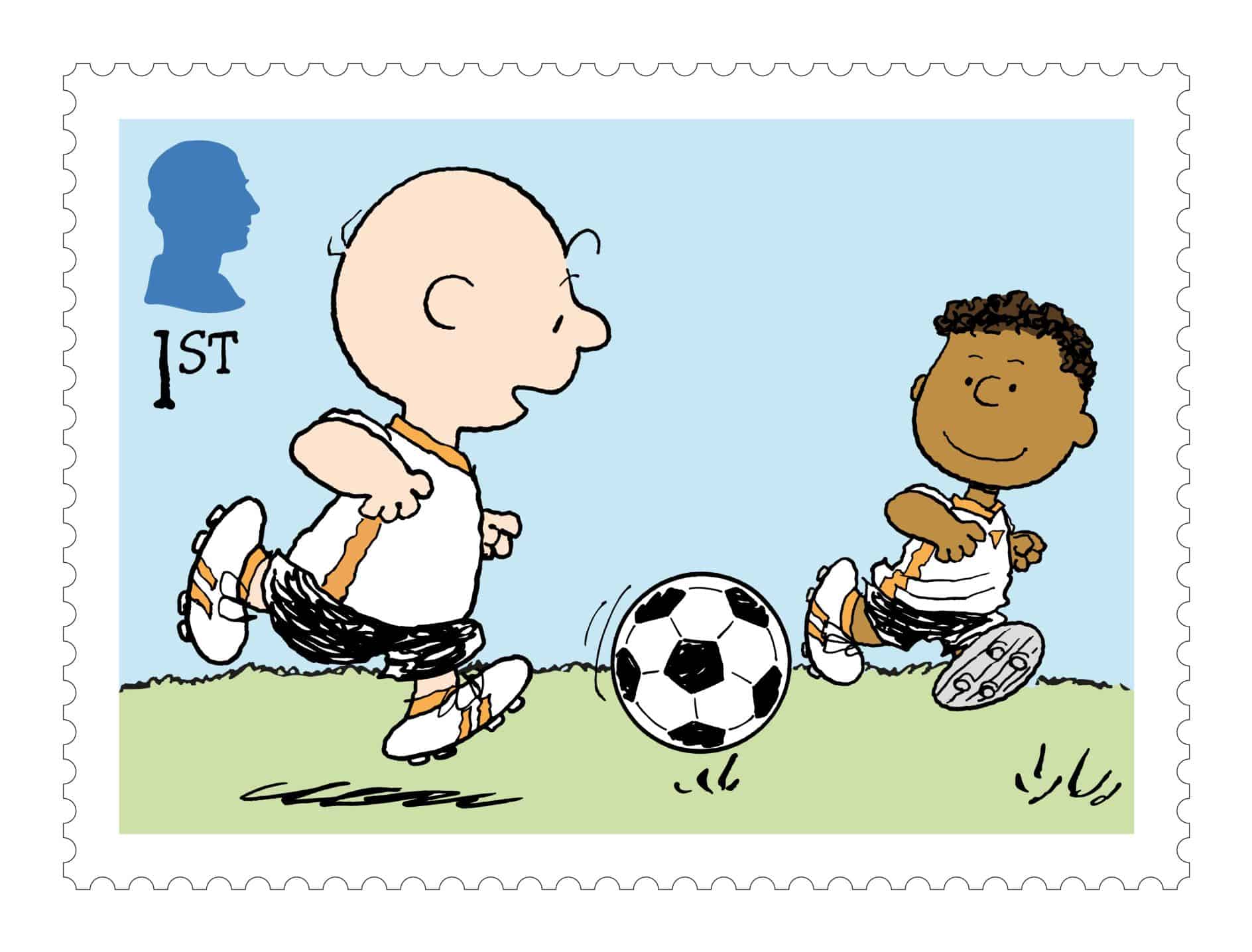Para conmemorar los 75 años de Peanuts, Royal Mail lanzó una colección de ocho estampillas diseñadas por el estudio creativo Interabang, en las que se rinde homenaje tanto a la obra original como a símbolos culturales británicos.